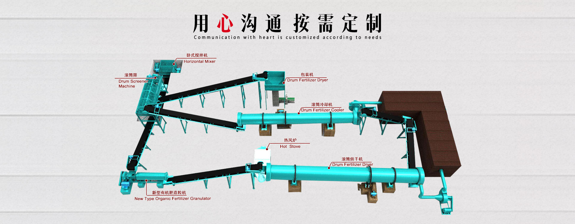 鄭州華之強重工科技有限公司,自主開發(fā)和生產(chǎn)出適合有機肥和生物有機肥生產(chǎn)使用的發(fā)酵設(shè)備、烘干設(shè)備、造粒設(shè)備、分篩系統(tǒng)、配料系統(tǒng)等全套肥料設(shè)備。我公司具有雄厚的技術(shù)力量、高素質(zhì)的員工隊伍和CAD 設(shè)計中心,能夠為肥料企業(yè)提供廠房設(shè)計、工藝改進、設(shè)備制作、安裝、調(diào)試,配方等一系列的全方位服務(wù),產(chǎn)品覆蓋全國各地,部分產(chǎn)品已配套出口。18年發(fā)展史產(chǎn)銷160多個國家在線員工100余人占地1800平方米公司主營產(chǎn)品:有機肥粉碎機、翻堆機、槽式翻堆機、攪拌機、造粒機、烘干機、冷卻機、篩分機、包裝機、除塵脫硫設(shè)備等,可根據(jù)客戶的要求設(shè)計1萬-50萬噸的有機肥生產(chǎn)流水線及車... 【了解更多】